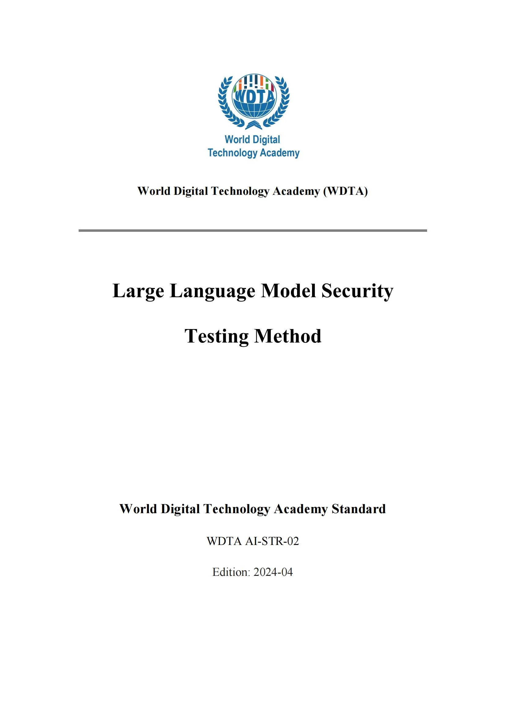 This standard document provides a framework for evaluating the resilience of large language models (LLMs) against adversarial attacks. The framework applies to the testing and validation of LLMs across various attack classifications, including L1 Random, L2 Blind-Box, L3 Black-Box, and L4 White-Box. Key metrics used to assess the effectiveness of these attacks include the Attack Success Rate (R) and Decline Rate (D). The document outlines a diverse range of attack methodologies, such as instruction hijacking and prompt masking, to comprehensively test the LLMs' resistance to different types of adversarial techniques. The testing procedure detailed in this standard document aims to establish a structured approach for evaluating the robustness of LLMs against adversarial attacks, enabling developers and organizations to identify and mitigate potential vulnerabilities, and ultimately improve the security and reliability of AI systems built using LLMs. By establishing the "Large Language Model Security Testing Method," WDTA seeks to lead the way in creating a digital ecosystem where AI systems are not only advanced but also secure and ethically aligned. It symbolizes our dedication to a future where digital technologies are developed with a keen sense of their societal implications and are leveraged for the greater benefit of all.