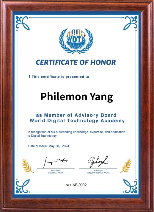May 30, 2024, H.E. Mr. Philémon Yang joined WDTA Advisory Board and accepted advisor certificate.