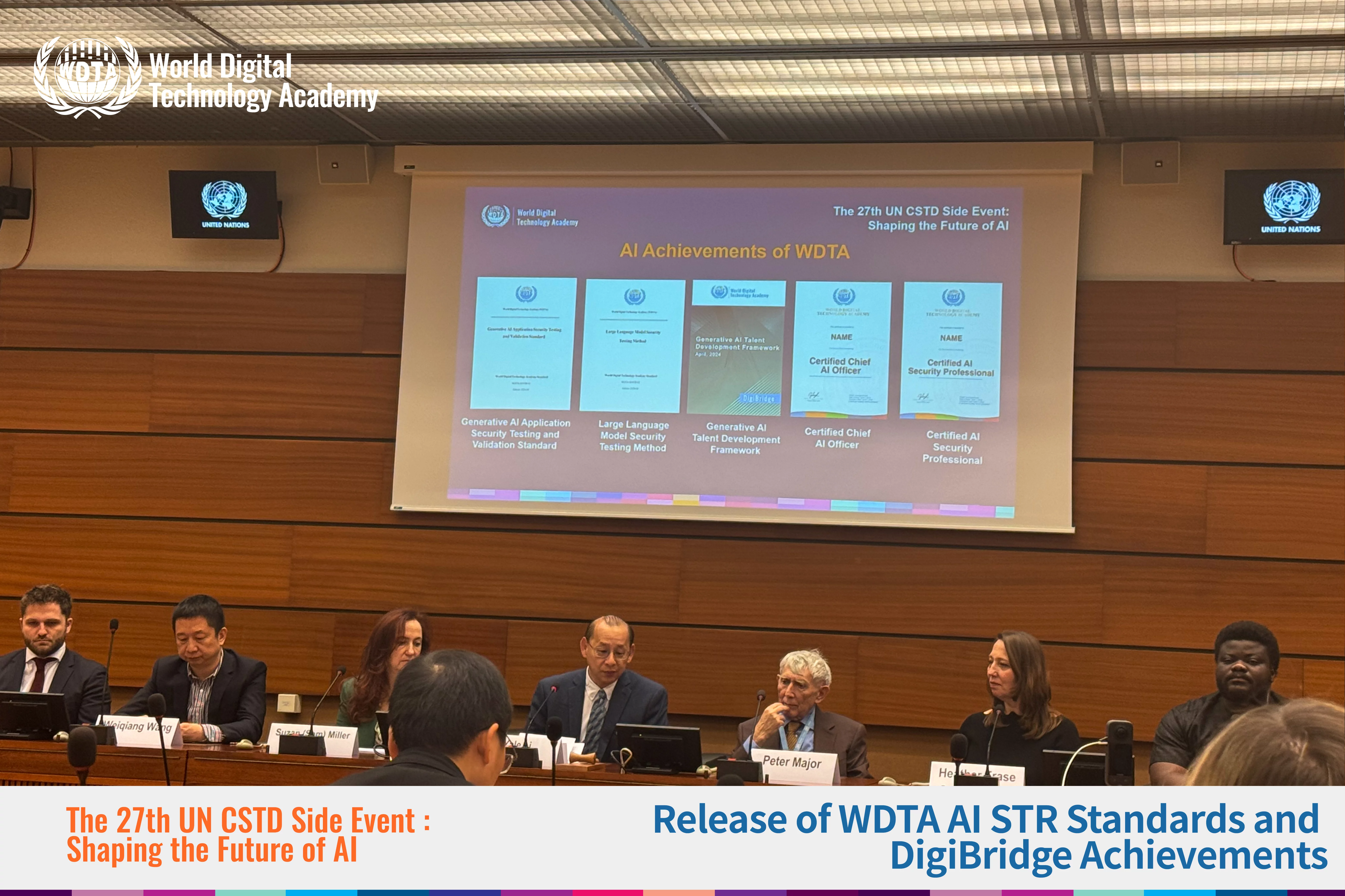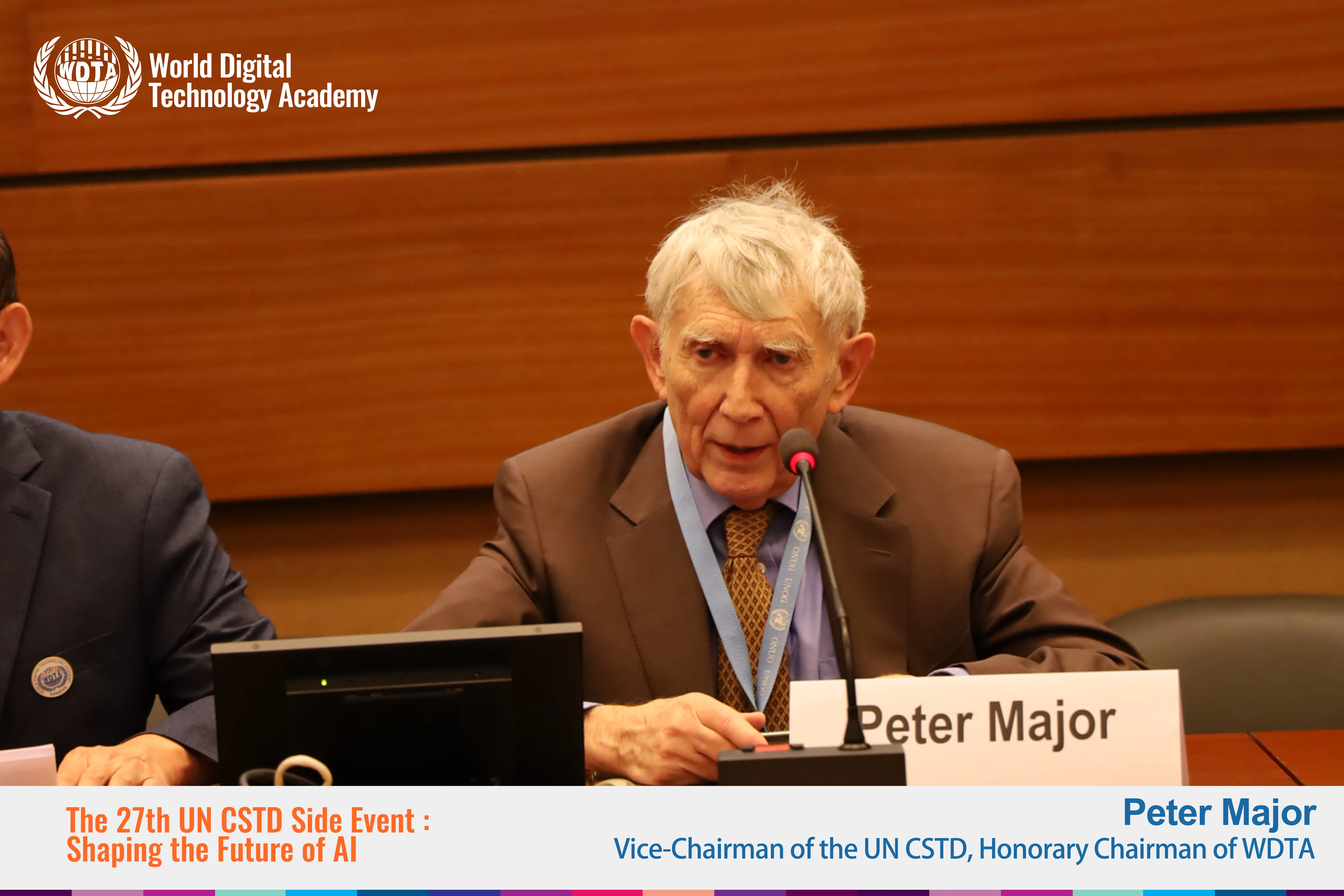 The Vice-Chairman of the UN Committee on Science and Technology for Development (UN CSTD) and founding Chairman of WDTA, Peter Major, led a roundtable discussion with prominent experts in artificial intelligence. Participants included Laurie Locascio, Under Secretary of US Commerce for Standards and Technology, Director of NIST; Suzan (Sam) Miller, Director of Google DeepMind; Darlington Aakogo, Chairman of the African Union AI Economy Committee and founder and CEO of minoHealth AI Lab; Osama A. Rayis, Chairman of the Arab Organization for Agricultural Development; and Heather Frase, Senior Researcher at Georgetown University's Center for Security and Emerging Technology (CSET). Other distinguished contributors were Weiqiang Wang, General Manager of the Intelligence Department of Ant Group; Nick Hamilton, Head of Governance, Risk, and Compliance at OpenAI; and Maxime Stauffer, Co-founder and CEO of the Simon Institute for Long-term Governance. Together, they discussed how generative artificial intelligence contributes to humanity and the UN Sustainable Development Goals (SDGs). They also thoroughly examined issues related to AI self-awareness, trust, and security. This dialogue highlighted the critical role of international cooperation in addressing global AI challenges.